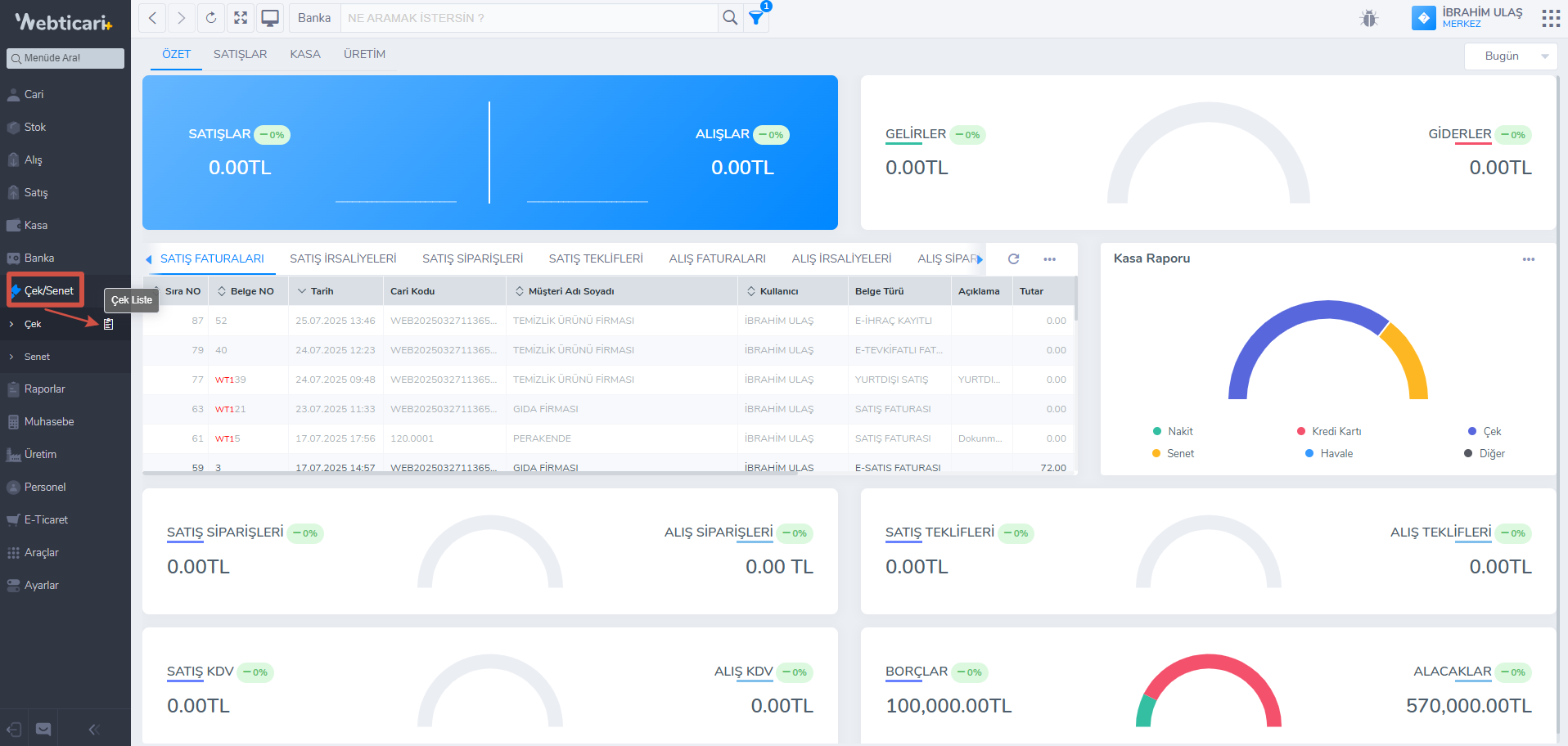 - Çek -> Çek Liste butonuna tıklayınız.
