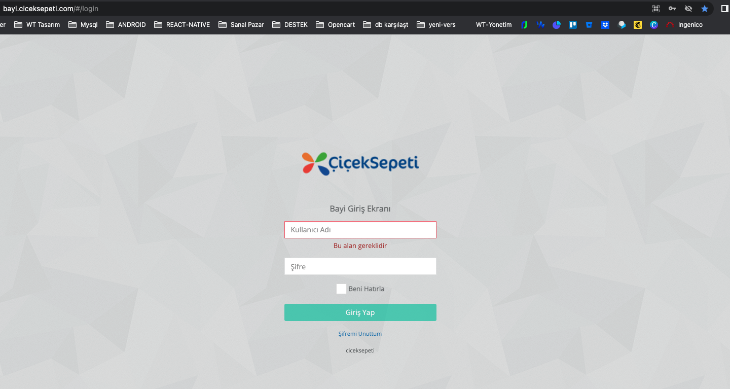 Çiçeksepeti api bilgilerinize ulaşmak için, bayi.ciceksepeti.com adresine giriş yapıyoruz.