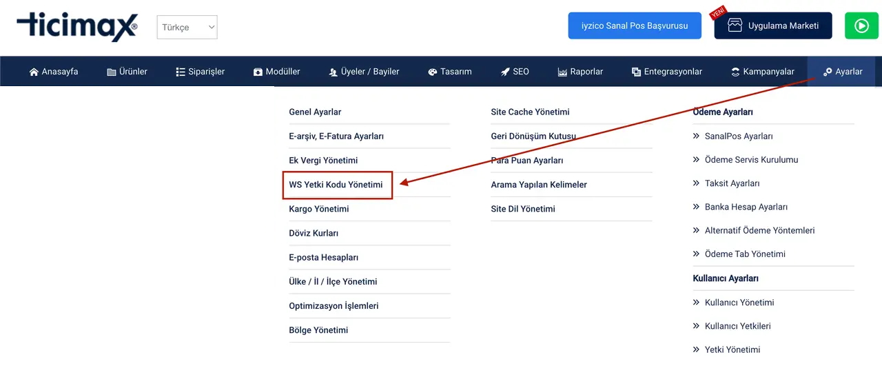 Ticimax Bağlantısı yapmak için aşağıdaki adınmları izleyiniz :