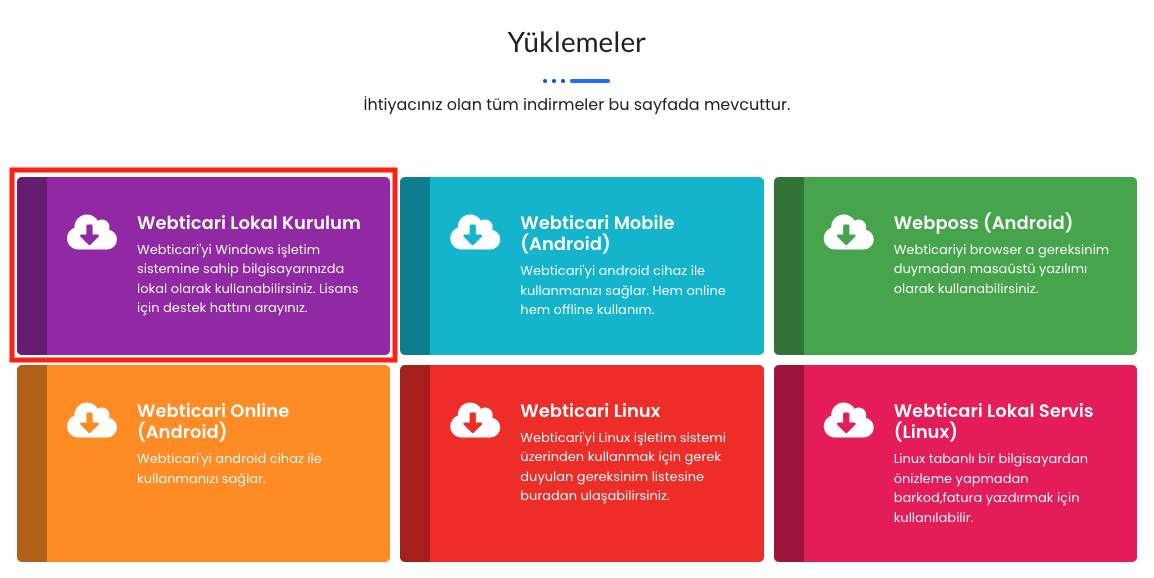 Açılan pencerede bulunan “Webticari Local Kurulum” programını bilgisayarınıza indiriniz.