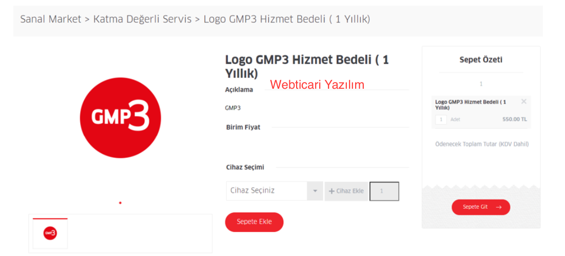 6- GMP3 entegrasyon yıllık ücreti için enetgratörlerden Webticari olanı işaretleyip ödemeyi tamamlayınız.
