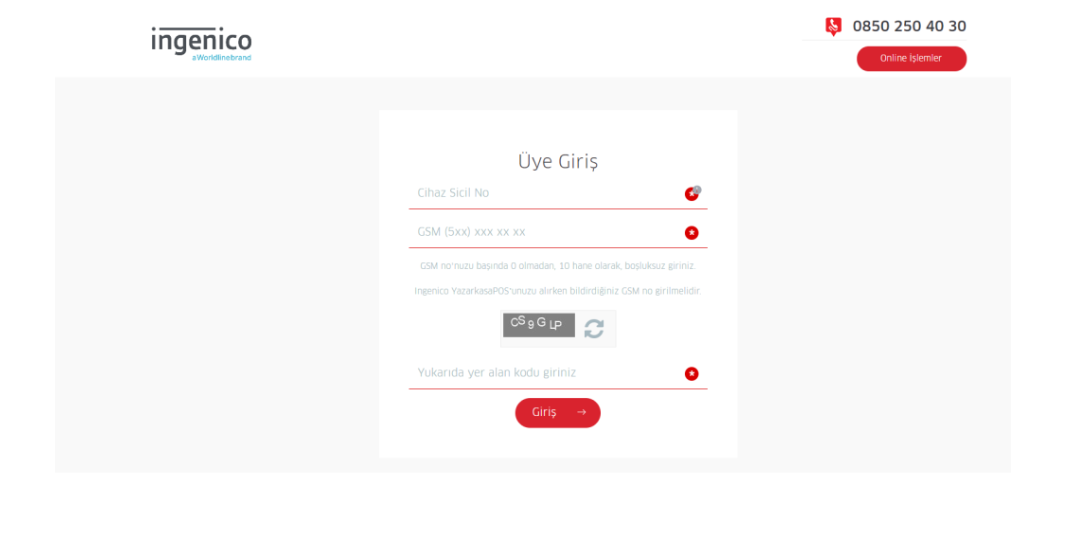 3- Üye girişi ekranında Yazarakasa Sicil No ve yazarkasa alırken vermiş olduğunuz telefon numarası bilgileri doldurularak giriş yapılır.