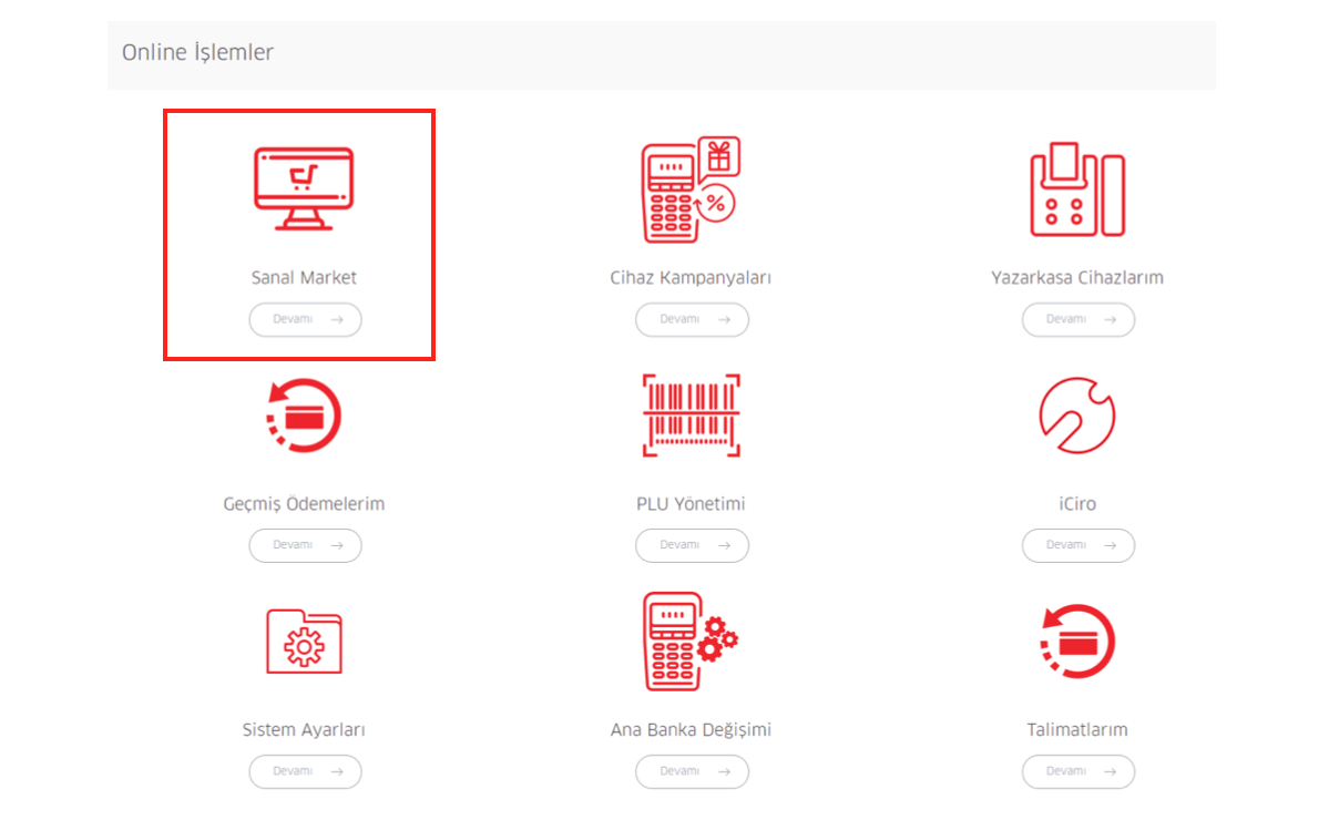 4- “Sanal Market” butonu tıklanır.