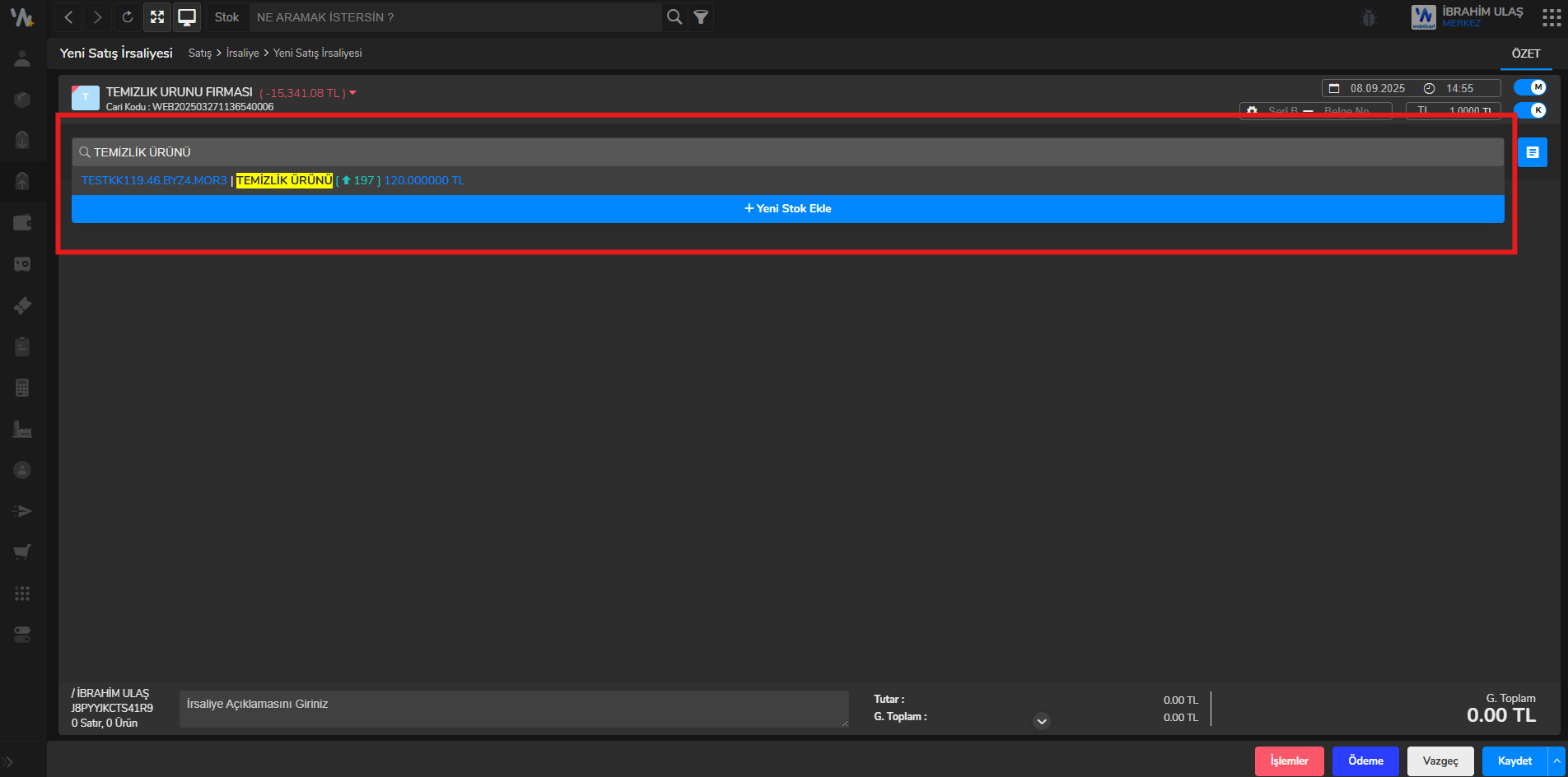 - İrsaliyeyi oluşturacağınız cariyi seçiniz