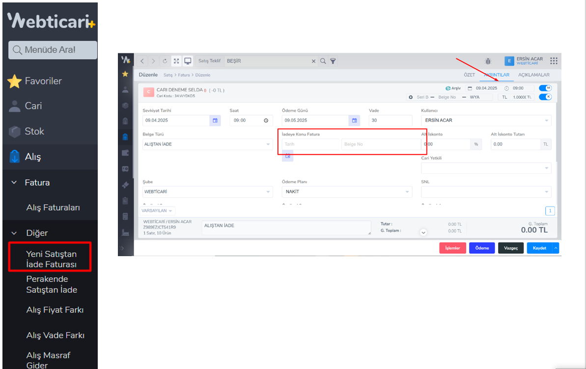 İade Faturası Nedir ? Webticari'de Nasıl Kesilir?