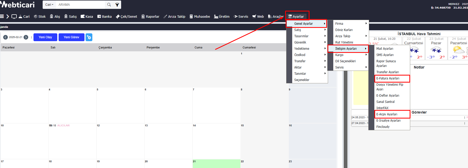 Web Ticari de, fatura ayarları dizayn,barkod logo bilgileri nerden ve nasıl ayarlarınır. Faturalarımızı, göndermeden önce, ön izlemesini yapmak için; Ayarlar>Genel Ayarlar>İletişim Ayarları>E-fatura ve E-arşiv ayarları’ nı seçerek fatura dizayn şablonunu, Varsayılan olarak seçip kaydettiğiniz de faturanızı göndermeden önce taslak olarak faturanıza ulaşabilirsiniz.
