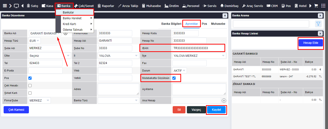 Eklemek istediğiniz bankanız listede yoksa Hesap Ekle butonu ile yeni banka ekleyebilirsiniz.
