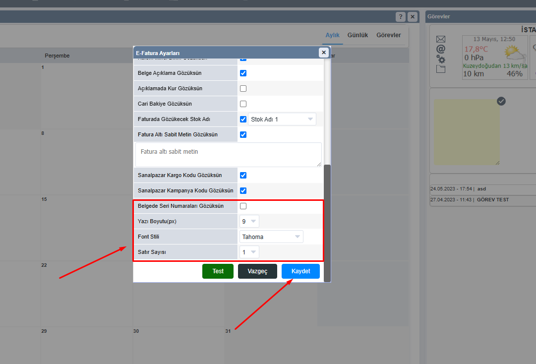 Faturanızın altında sabit bir metin örnek; İrsaliye Yerine Geçer yada farklı bir not eklemek isterseniz Fatura altı sabit metin özelliğini kullanabilirsiniz.