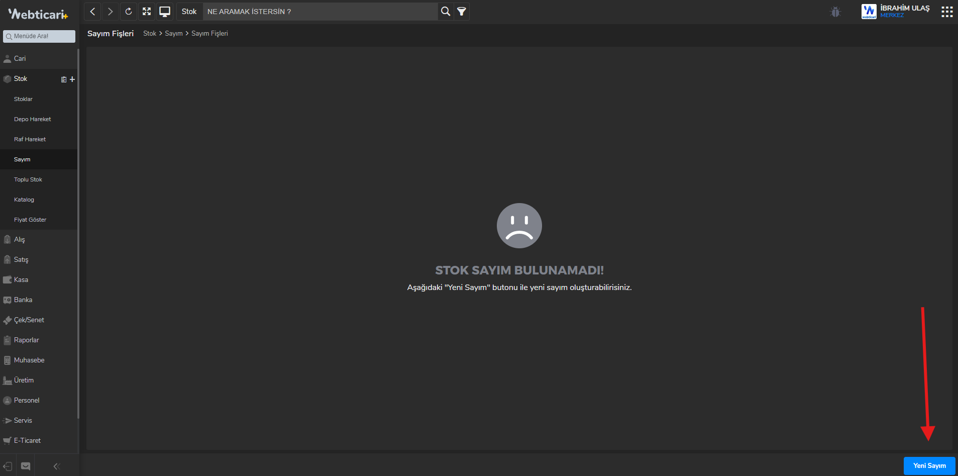 2. “Yeni Sayım” butonuna tıklayarak yeni sayım fişi açınız.