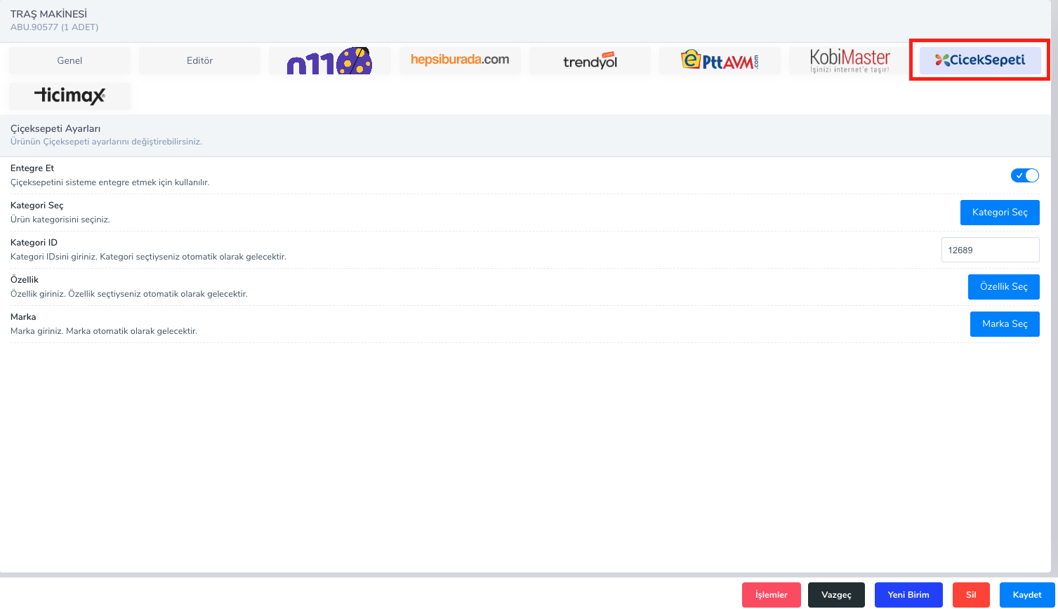 Eğer Çiçeksepeti’ndeki ürünün barkodu Webticari’de bulunamazsa, “ürün barkodu bulunamadı” uyarısı alırsınız, bu durumda ise barkodu koplayarak Webticari’deki ilgili stoğun barkod alanına yapıştırmak olacaktır.