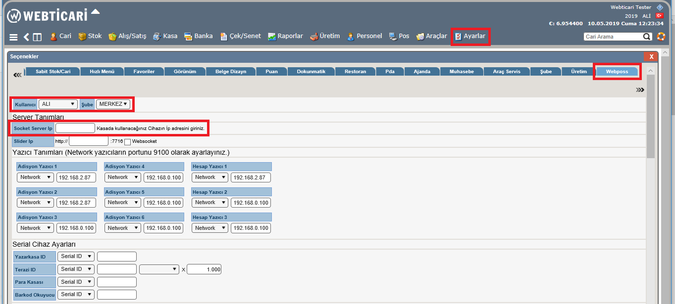 4-Devamında, Ayarlar>Seçenekler>Webposs sekmesinde bulunan “Server Tanımları” bölünden Socket Server IP tanımı yapılır.