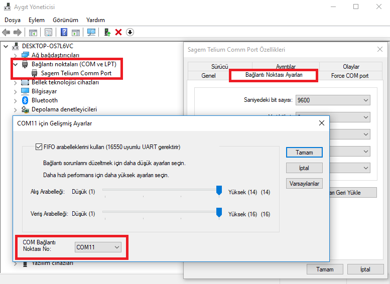 b) Kurulum bittiğinde bilgisayarınızın “aygıt yöneticisi”nde COM port bağlantılarından hangi portun tanımlı olduğunu görebilirsiniz.
