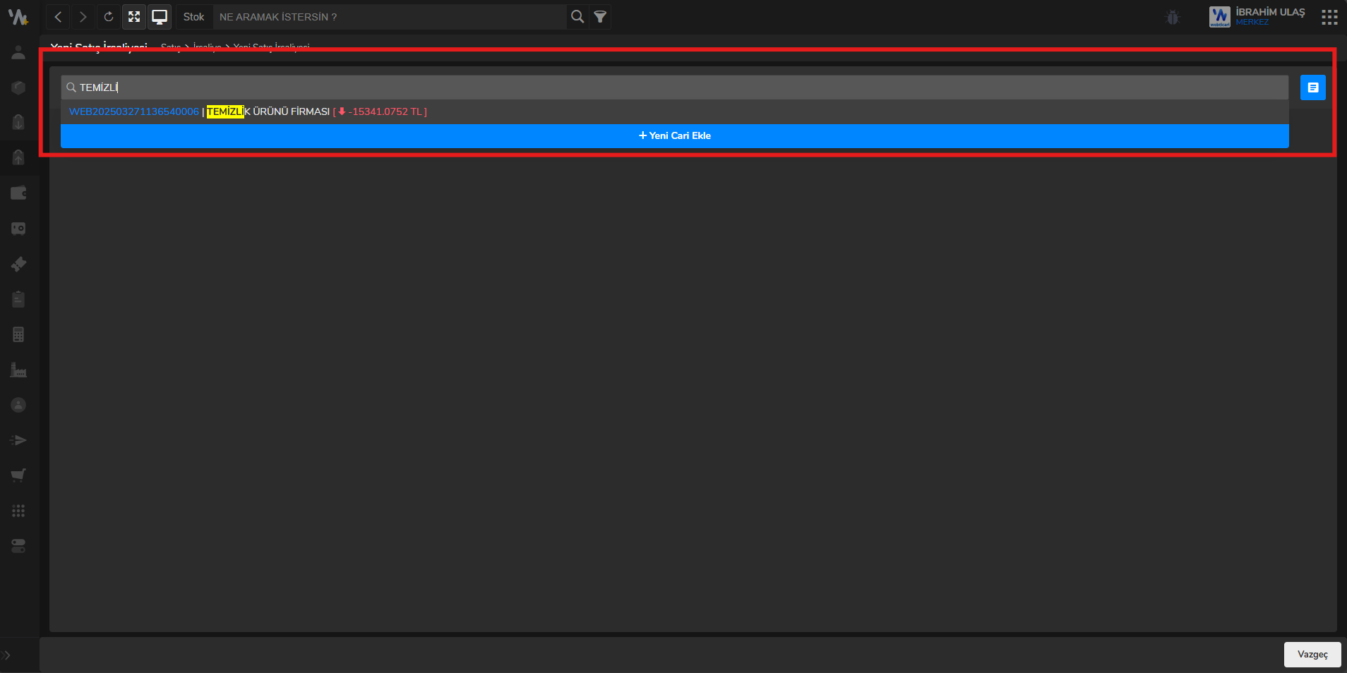 - İrsaliyeyi oluşturacağınız cariyi seçiniz