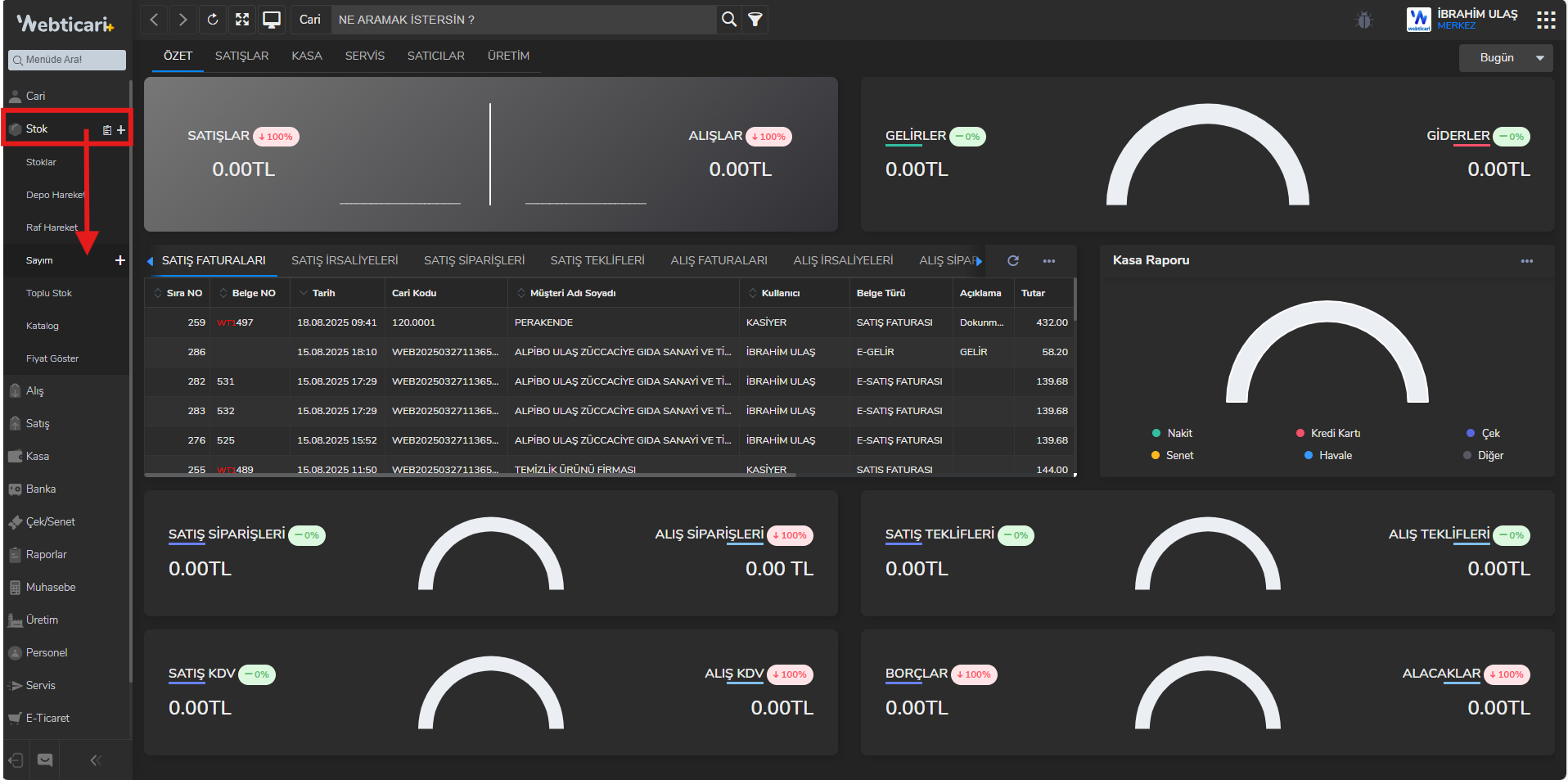 - Webticari ana menüsünden Stok -> Sayım seçeneğine tıklayınız.